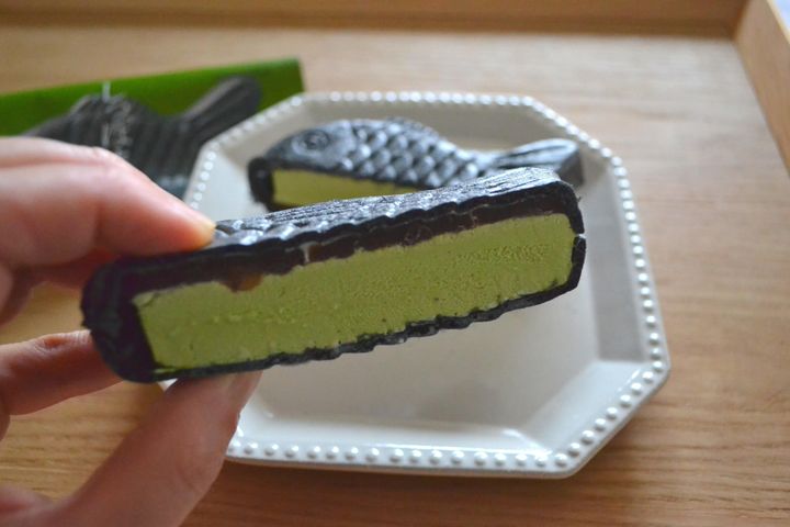 中は抹茶アイスと黒蜜風味粒餡がサンドされています。