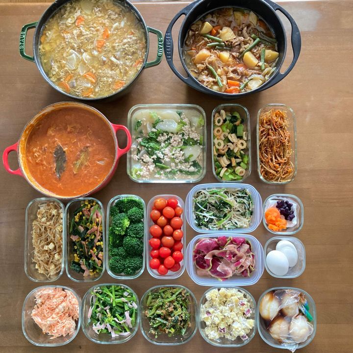 週末に家事貯金の作り置きおかずを作っておけば、平日の夕飯作りがグッと楽になります。