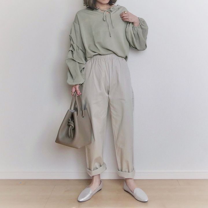 裾をロールアップして足首を見せてあげると女性らしい印象に。