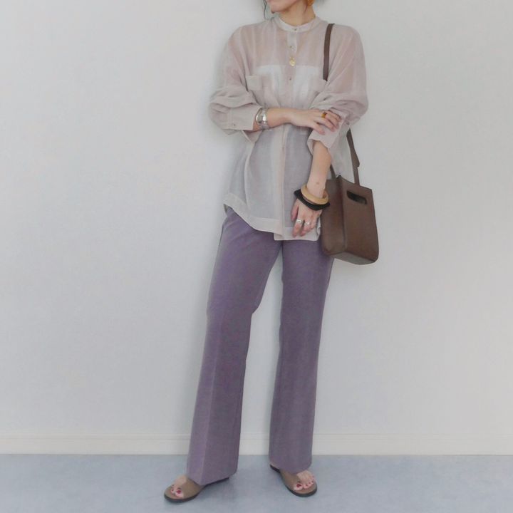 今年定番のシアーシャツと合わせればトレンドコーデの完成。
