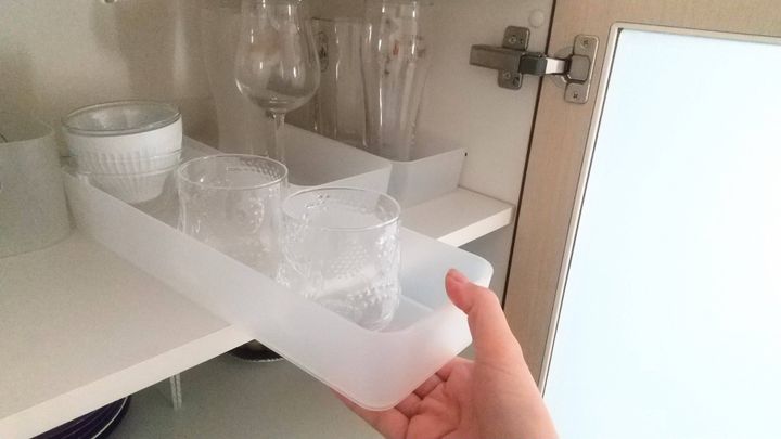 取り出しにくい奥の食器も、ボックスを引き出すだけでスイスイと取ることが可能に。