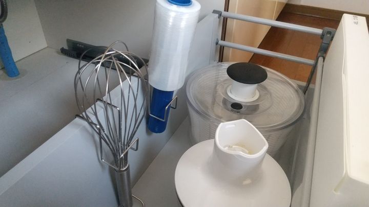 泡立て器や梱包用フィルムなども「立てる」形での収納が可能に。