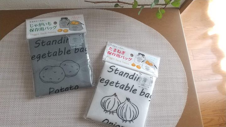 セリアの「じゃがいも保存用バッグ」と「たまねぎ保存用バッグ」をご紹介しました。