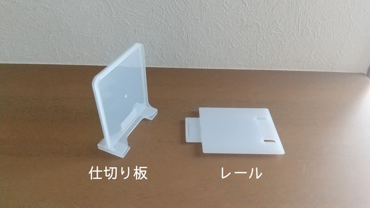 中身は仕切り板1枚とレール1枚で1セットとなっています。