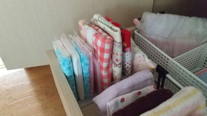 今まで無造作に入れていた氷枕を立てて収納し、こちらもスッキリしました!