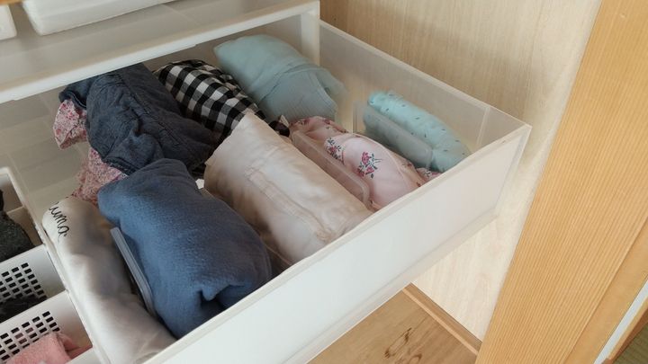 その他にも子どもの服を収納している押入れ収納ケースにセットして、洋服を細かく仕切ることにしました。