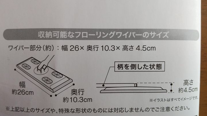 収納可能なフローリングワイパーのサイズは上記の画像の通りです。