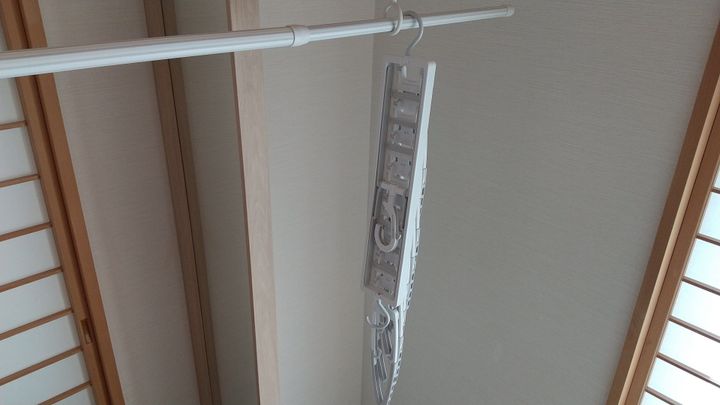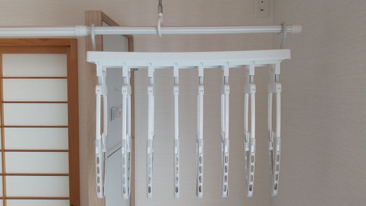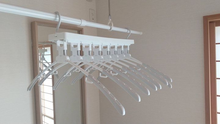 ですが、コレ1つで8着分の洋服が掛けられるので、一気にたくさん干せてとても便利です。
