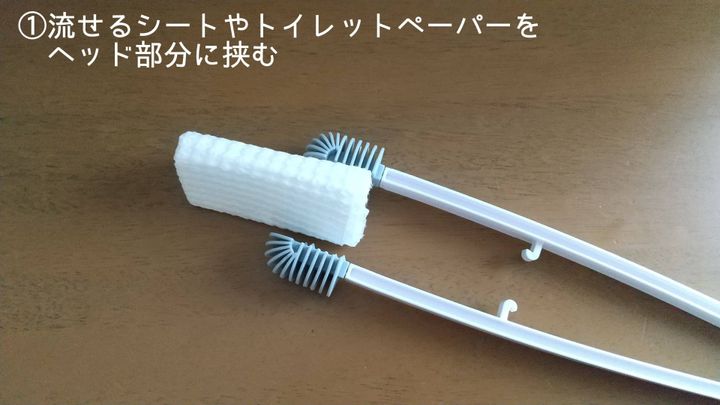 トイレットペーパーや流せるトイレ用シートなどをトングに挟んで使い、お掃除した後はそのままトイレにポイっと流せる便利なアイテムです。