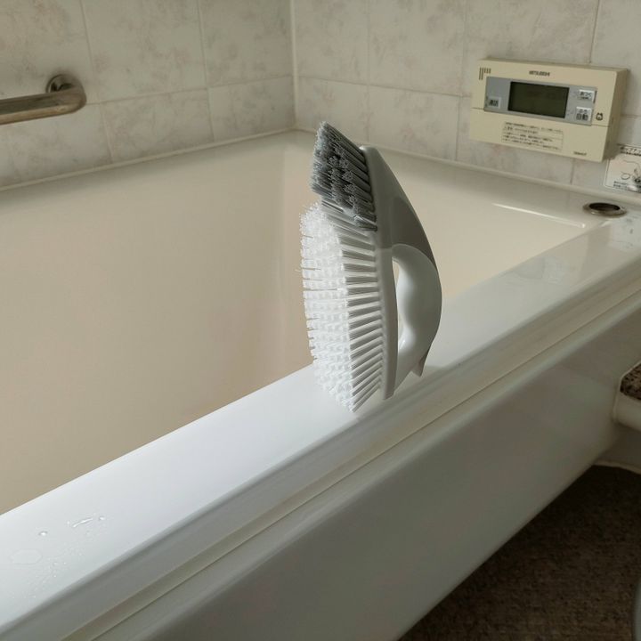 お風呂掃除はこのように広い面から細かい部分まであるので、何種類ものブラシが必要になりますが、これなら1つで事足りるのでお掃除もラクに。収納場所も省スペースで済みます。