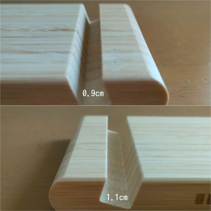 スマホなどを立てるスロットは0.9cm幅と1.1cm幅の2種類付いています。