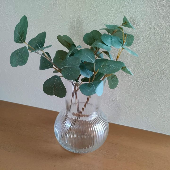 ちなみに我が家ではポードラグとユーカリ3本を組み合わせてこのように飾っています。これがあるだけで涼し気で爽やかな雰囲気になり、どこに置いても映えるのでお気に入りです。