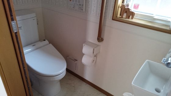 備え付けのホルダーに予備のトイレットペーパーを吊り下げて保管できる、とっても便利なアイテムです♪