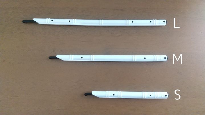 サイズはS/M/Lの3種類あり、S(袋幅11cmまで)、M(袋幅16cmまで)、L(袋幅20cmまで)の対応サイズで、どれも2本入りのセットになっています。