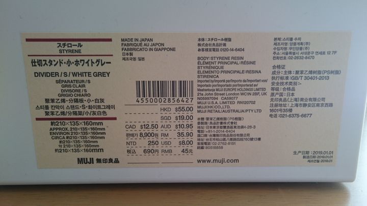 無印良品の「スチロール仕切りスタンド・ホワイトグレー・3仕切・小」です。