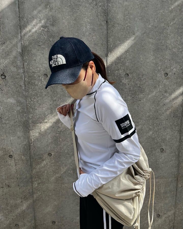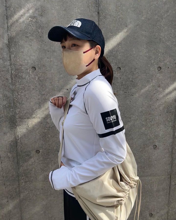 ジムバッグにはUNIQLOのドロストリングショルダーバッグが使えます。タオルやタンブラーも入りますしジム着との相性もよし!
