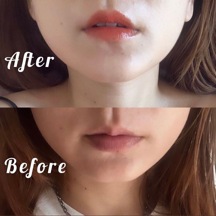 実際につけてみました。シロップのような透明感とフレッシュなオレンジが爽やか!この潤いで落ちないのは嬉しい!