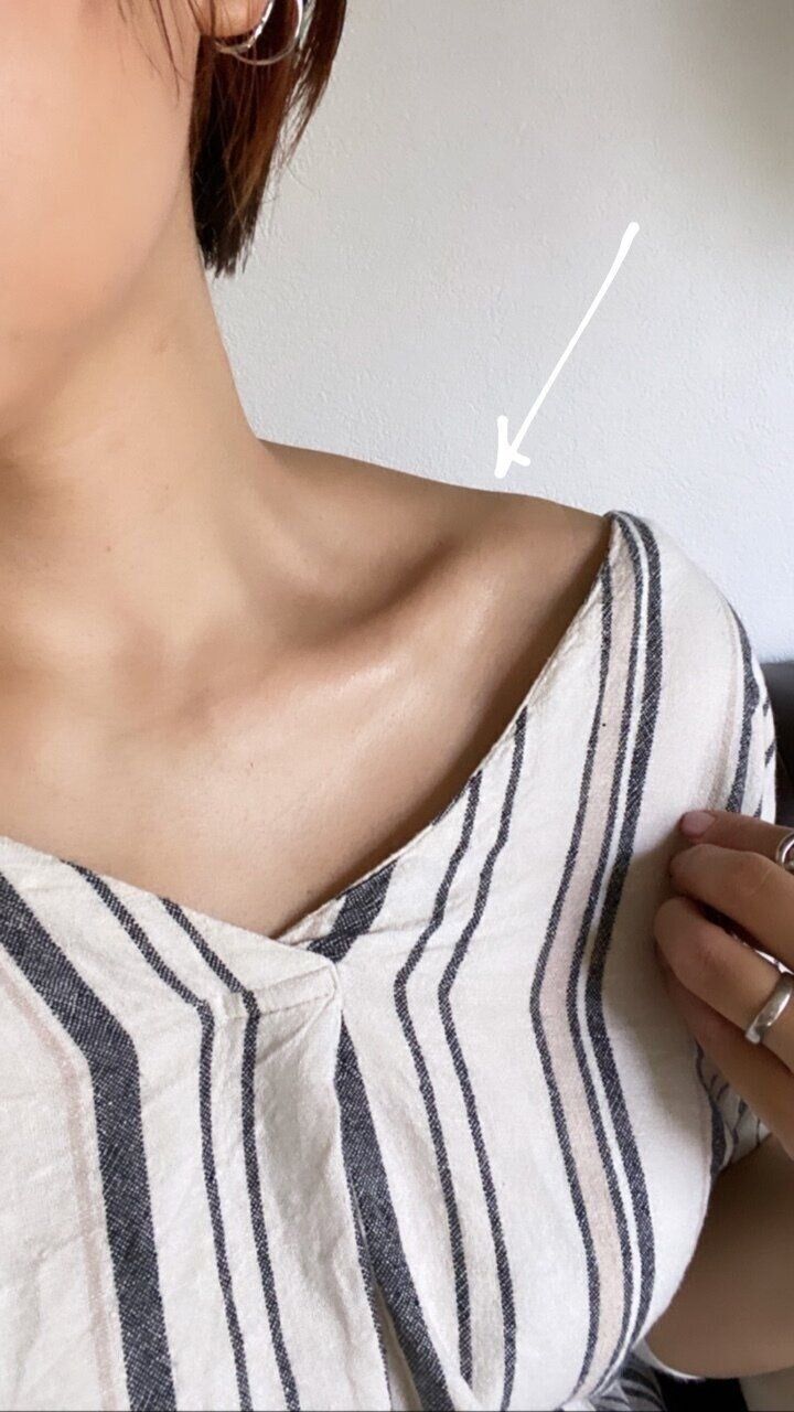 デコルテにもバームを仕込んで、発光させればレフ版効果で顔全体のトーンも上げてくれ脱疲労顔が叶います。