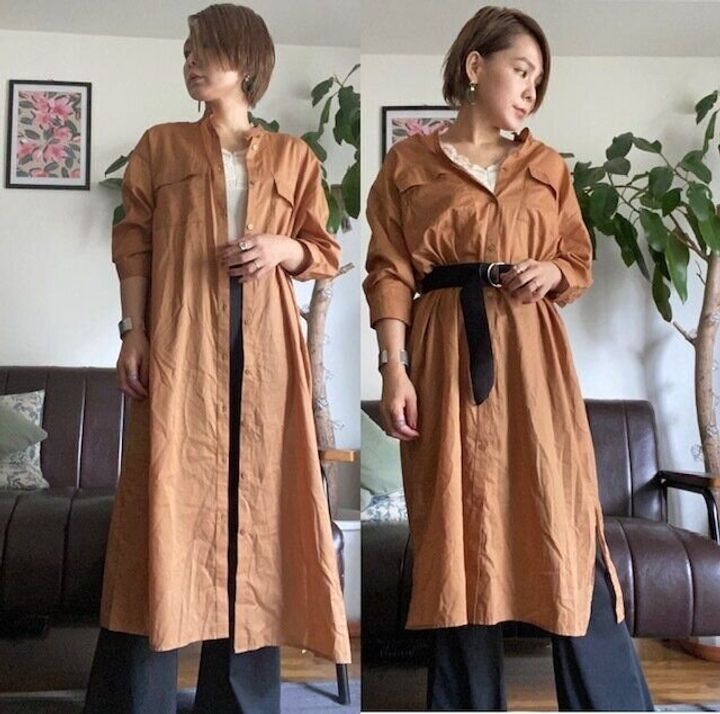 ワンピースとして着るのか羽織として着るのかで印象が変わるアイテムです。