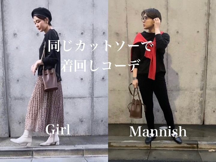 アラサー、アラフォーの同じカットソーでテイスト別着回しコーデ