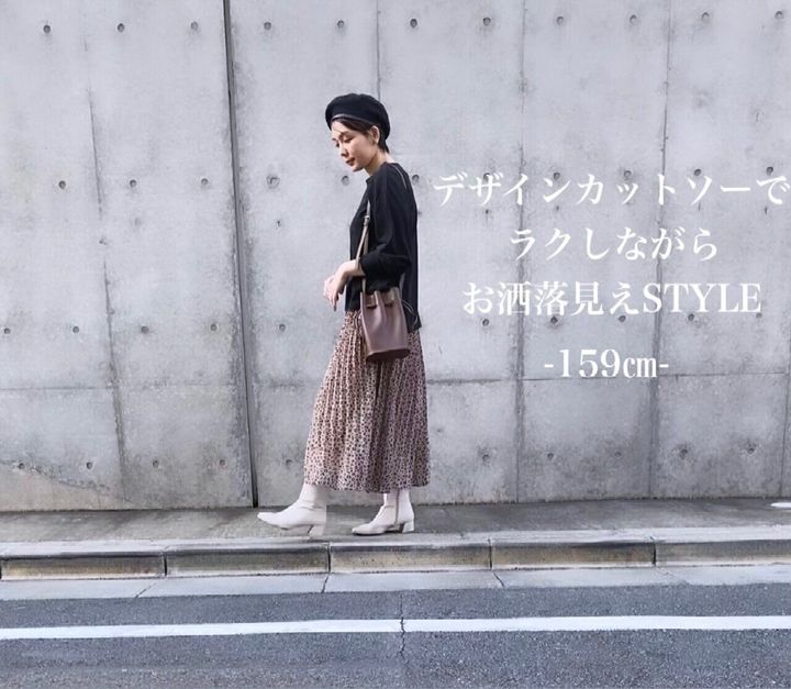 黒をベースにしているので、甘さ控えめなスタイリングです。