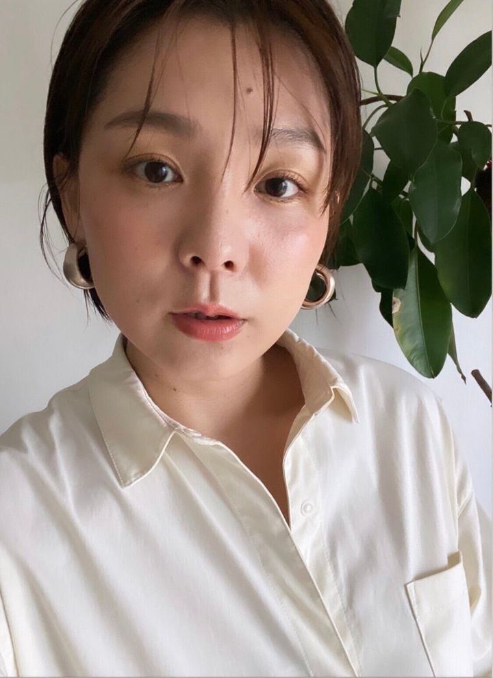 紹介したコスメでメイクしたのがこちら。イエローのアイシャドウ、そんなに主張せずいい色ですよね。目の際にはアイシャドウブラシでオレンジのアイシャドウを細く入れています。
