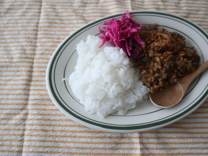 キーマカレーとか、野菜で作ったふりかけとか、浅漬けとか、鶏肉の照り煮とか、、