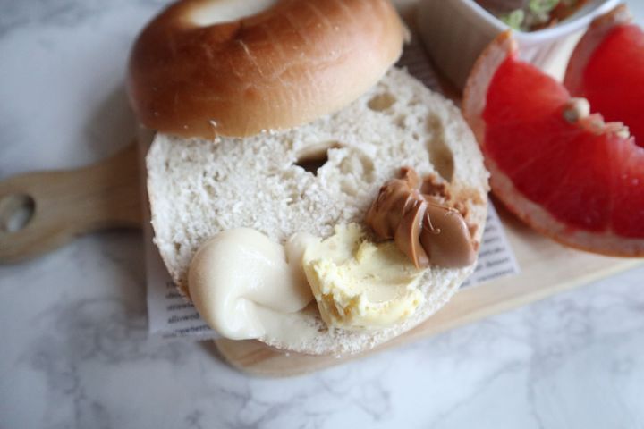 ベーグルにスプレッドをぬって味比べ。