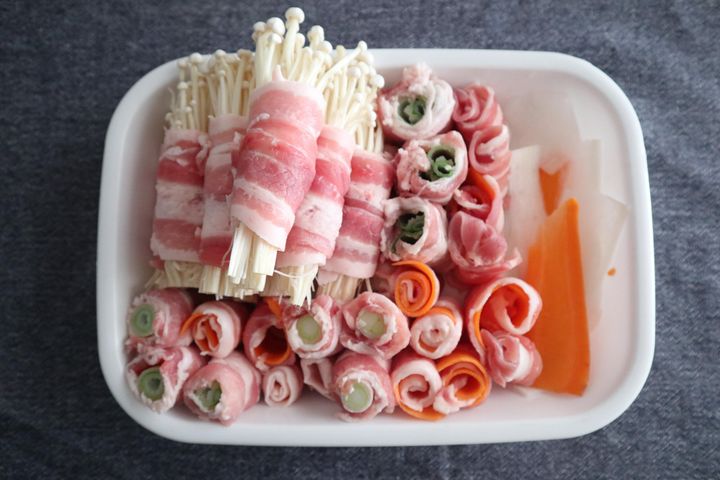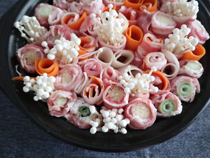 あらかじめお肉と野菜を巻いてあるので食べやすいです。