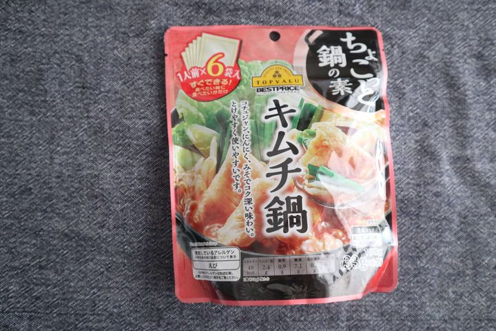 今回使った鍋つゆは、イオンのPBトップバリュベストプライスの“ちょこっと鍋の素”を使っております。