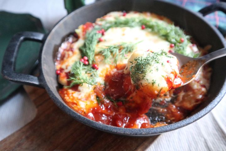 クリスマスにもおすすめ!市販のパスタソースで時短‼とろける美味しさのスキレット料理