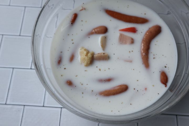 2.1を30秒ほど混ぜて、さらに5分電子レンジで加熱。30秒ほど混ぜたら完成です。