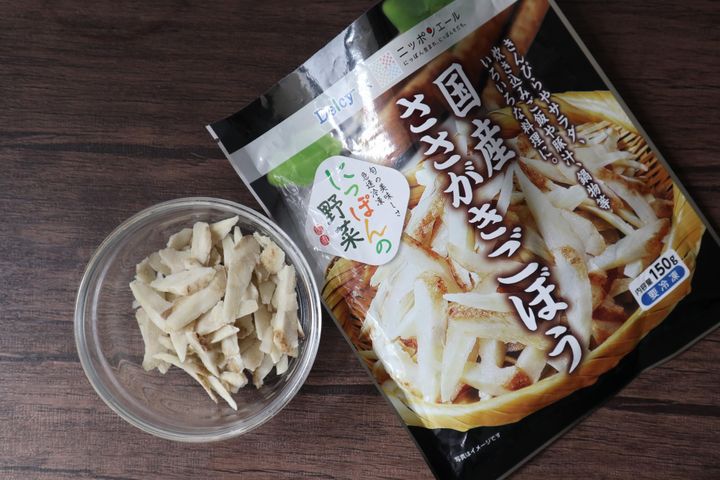 豚汁の具材の一つに使った冷凍の国産ささがきごぼうです。