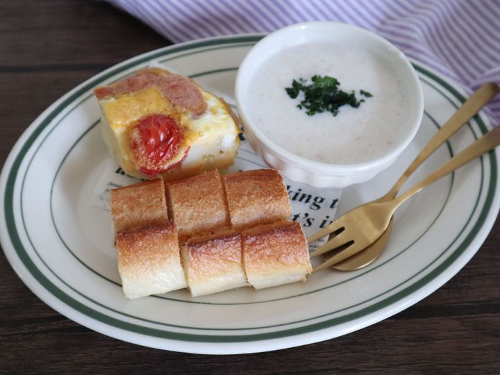 1.耐熱ボウルに、みんなのやさい“国産さといも”を汁ごと入れて、玉ねぎ、ベーコン、塩、ブラックペッパーを加えて、ふんわりラップをして600Wの電子レンジで5分加熱。