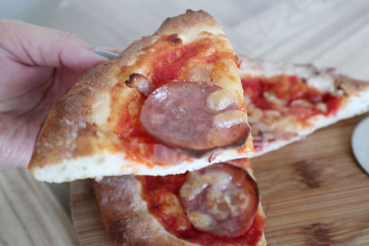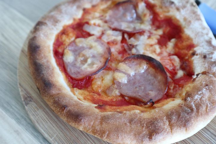 トッピングは、ソフトサラミとショルダーベーコンがトッピングされています。