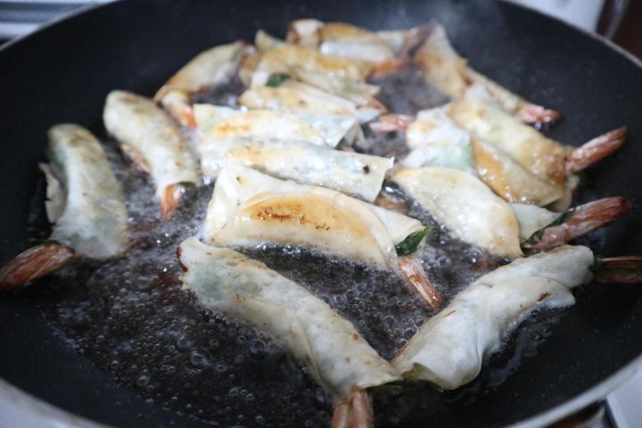 材料3つで巻いて揚げるだけで簡単に作れる《海老と大葉のカリカリ揚げ》の作り方をご紹介!
