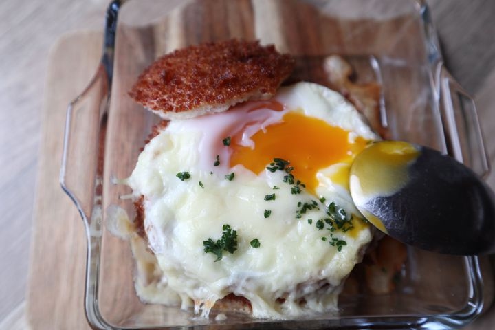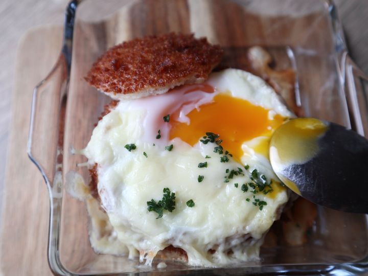 とろとろの黄身をくずして、パンに絡めて食べると絶品です。