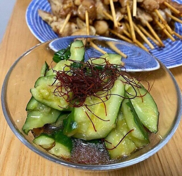 たたいたきゅりとポン酢、ごま油を袋に入れて放置。