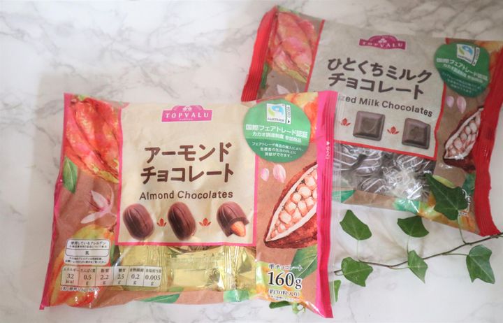 うちの子供たちが取り合うほど大好きなイオントップバリュのアーモンドチョコレートとひとくちミルクチョコレート。