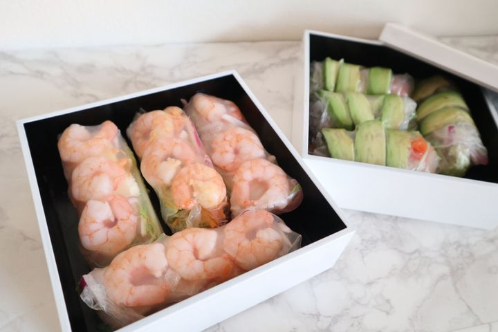 写真のように生春巻き、デリサラダなどを詰めて持っていくとこのまま出せるのでおすすめです。