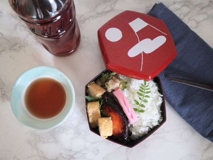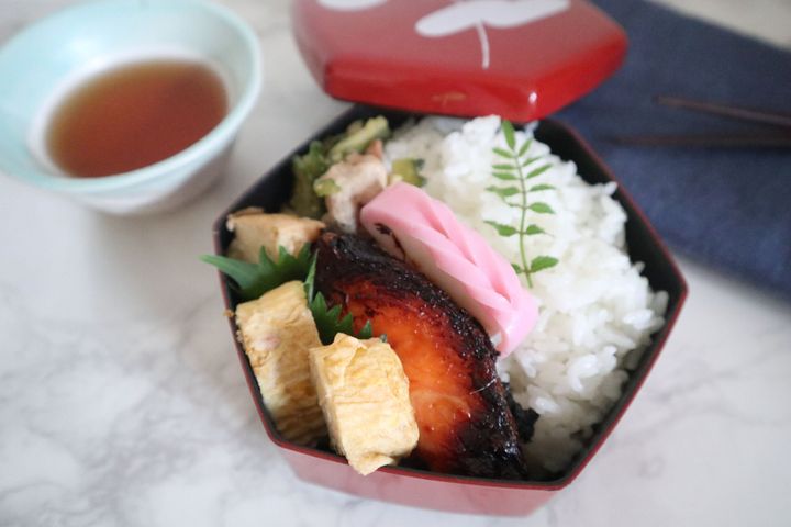 いつかの私のお昼ごはん。朝、夫と長男のお弁当を作るついでに自分のお弁当も作っています。リモートワークの合間にサクッと食べられて便利。