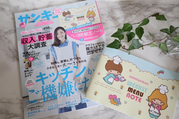 サンキュ!7月号は、キキララちゃんの1週間献立ノートがついてきます!かわいいから気分もあがりますね。本誌にある『なかしましほさんのカスタードサンド』のレシピが気になるので作ってみようと思います。