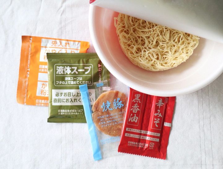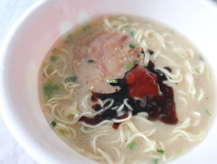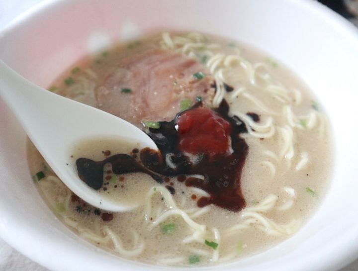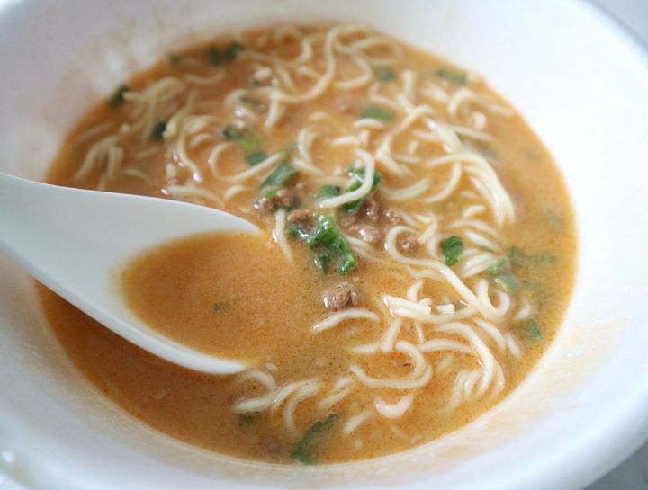 今回は、お湯で作っていますが温めた牛乳で作ると坦々麺のようになっておすすめです。その際は放置時間を1〜2分長めにしてください。メンマのコリコリ食感もクセになります。