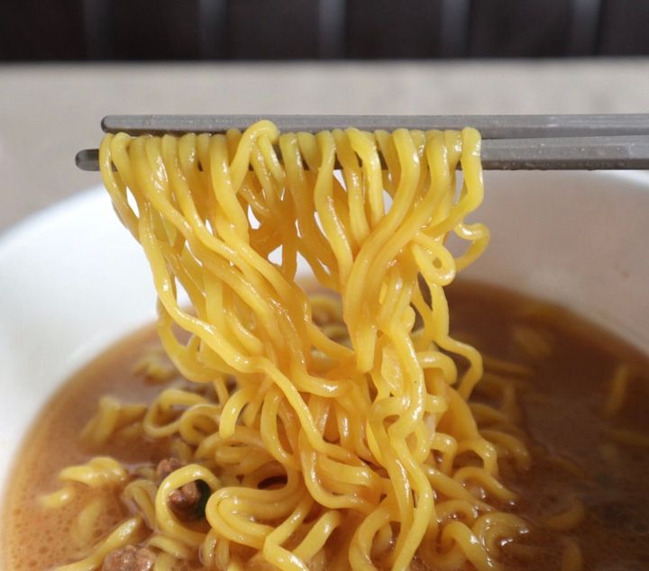 すみれはとにかく麺が美味しい!まるで生麺のようなチュルンとした喉越しでカップ麺とは思えない味わいです。