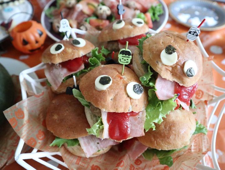 ハロウィンピックはモンスターバーガーに刺して!個人的にはフランケンシュタインとミイラが可愛くて好きっ