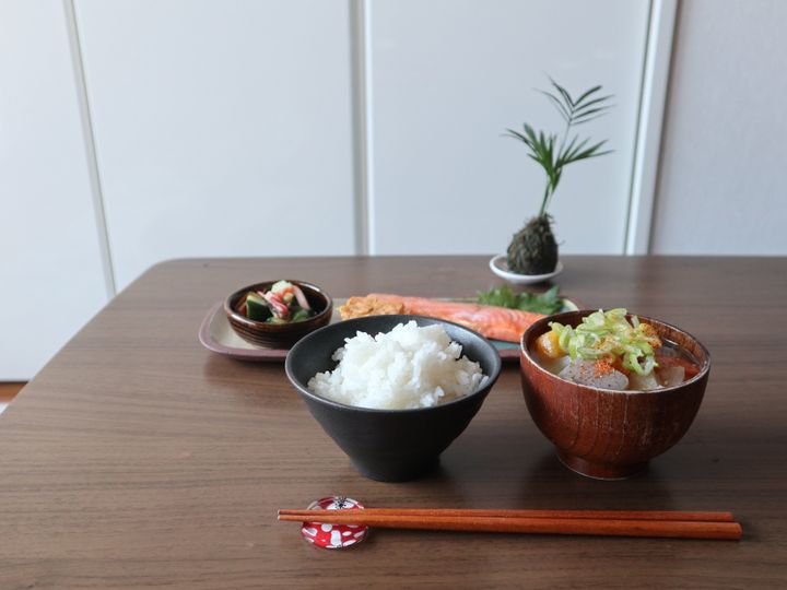 炊き立てごはんには豚汁。豚汁には炊き立てごはん。相思相愛ですね( *´艸`)