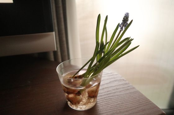 ムスカリやヒヤシンスなどの水耕栽培のものを楽しい。