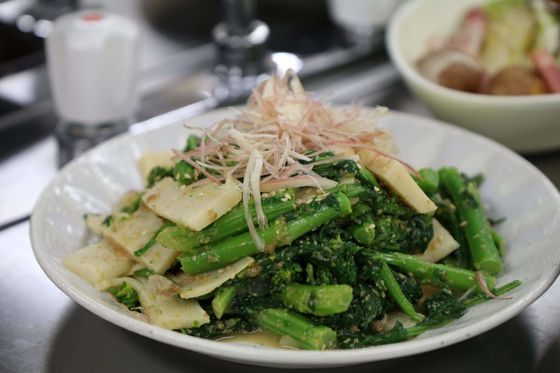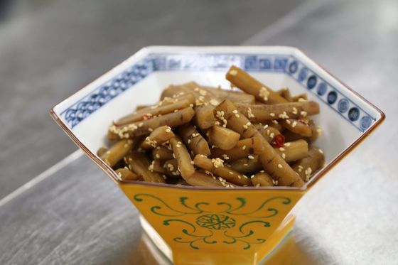 ピリッと辛いお漬物のような感じ、歯ごたえもしっかり目。