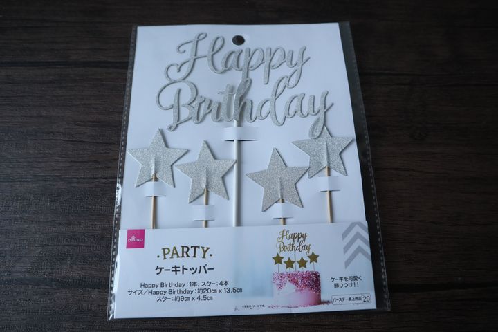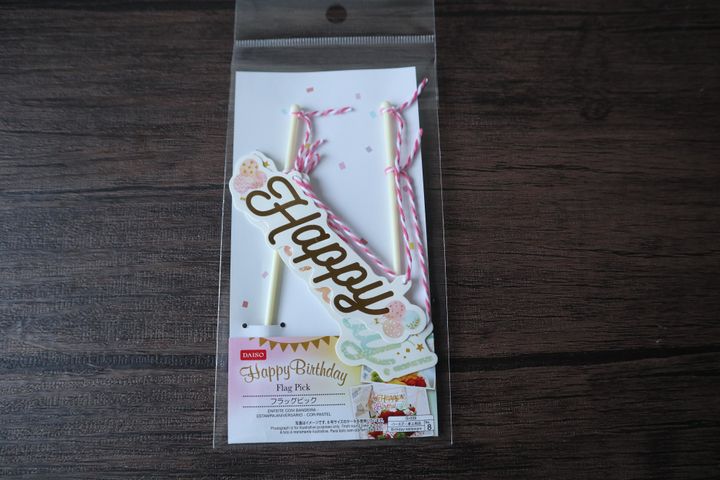 ダイソーのケーキトッパー、クオリティが高く、グッとおしゃれ見えするのでお勧めです。