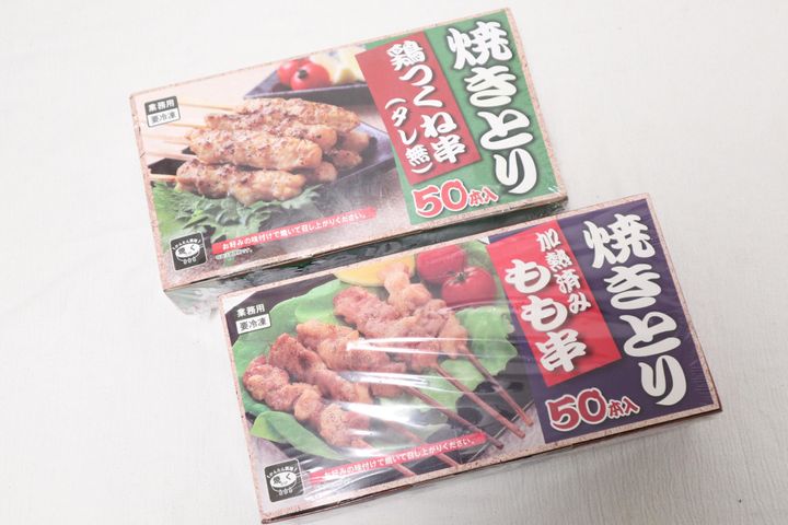 冷凍焼きとり鶏つくね串50本入り1080円。1本あたり22円。